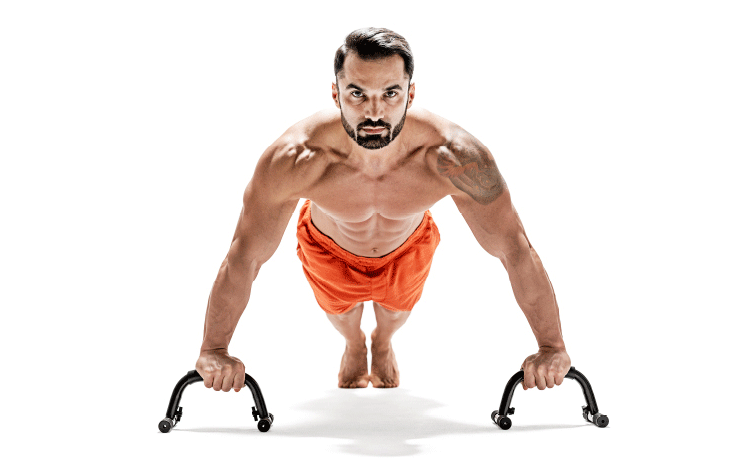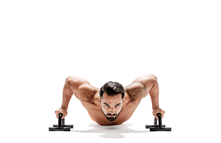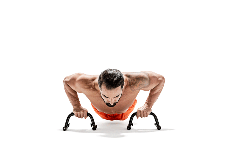 プッシュアップバーは、腕立て伏せをより効果的に行うためのツールです。体を深く沈めて大胸筋をしっかりとストレッチさせてから押し上げるため、通常の腕立て伏せでは得られない高い運動効果を実現します。耐荷重は1トンです。